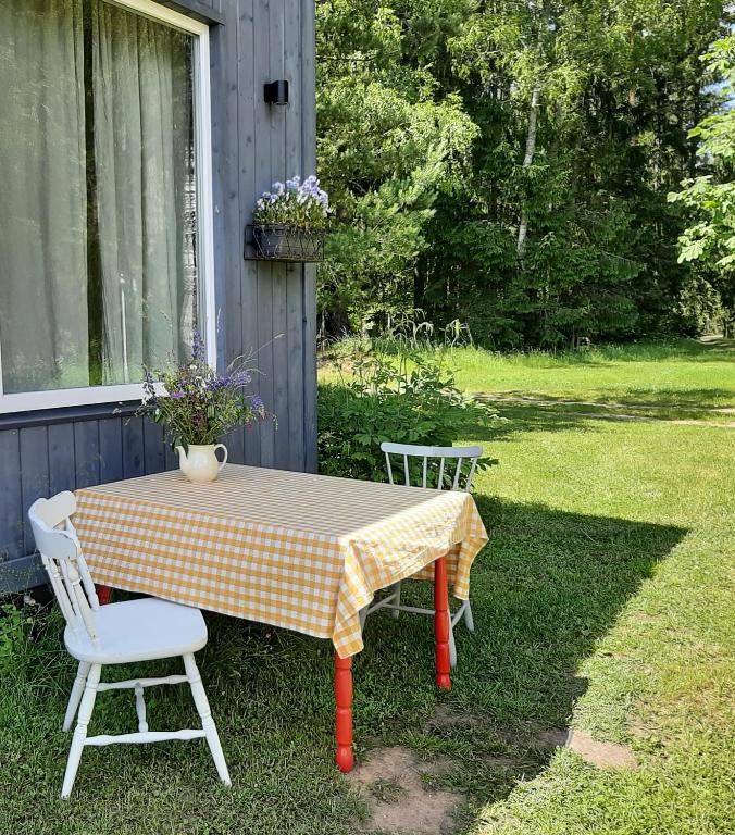Namiņš piemērots atpūtai divatā. Līdzi atpūsties var braukt arī mājdzīvnieki.