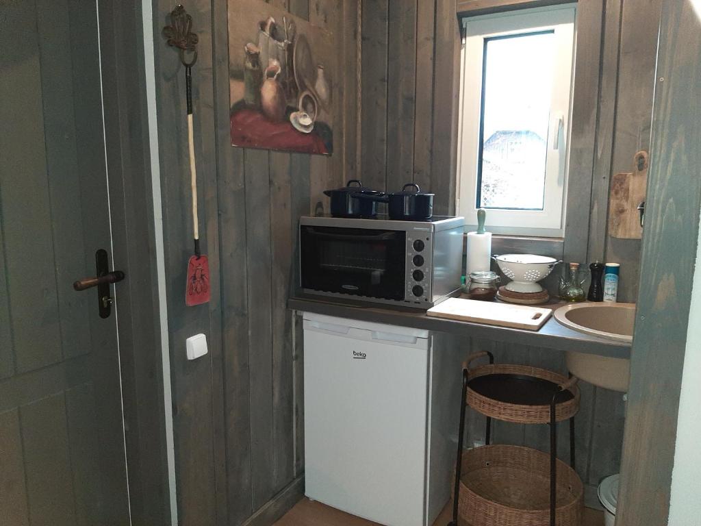 Namiņā ir duša (fēns, dvieļi, dušas želeja, šampūns, kondicionieris), tualete, virtuves zona ar plīti, cepeškrāsni, traukiem, tējkannu, grilu. Televizors, kondicionieris, apkures sildītājs.